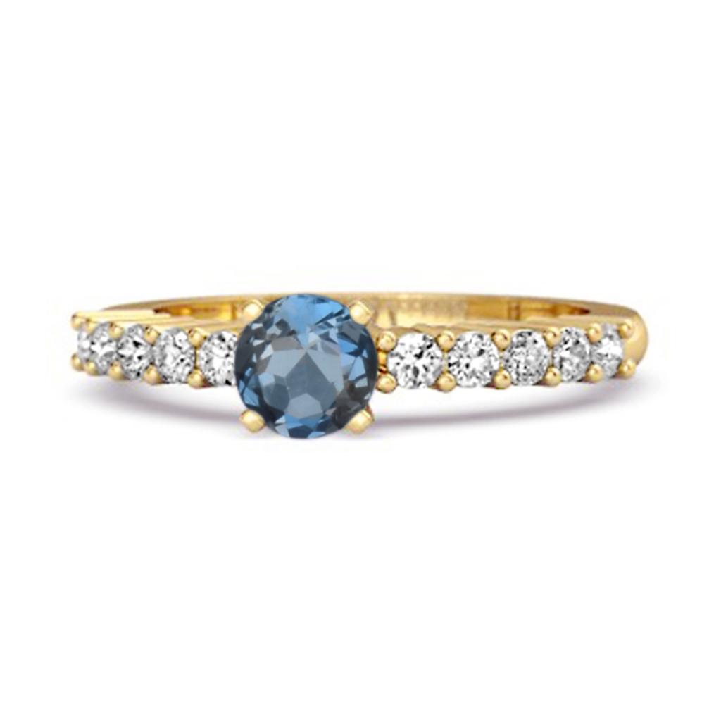 London Blue Topaz Round Solitaire Ring - 925 Sterling Silver Gold Vermeil