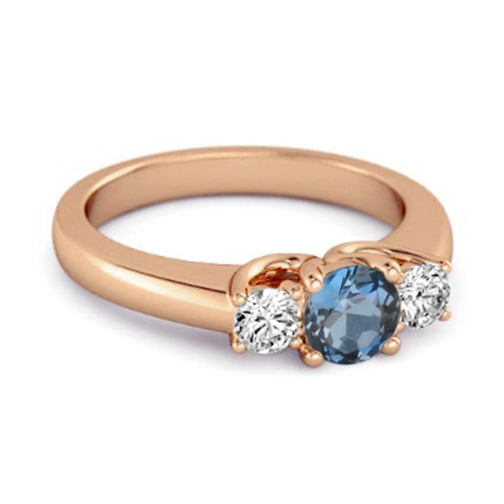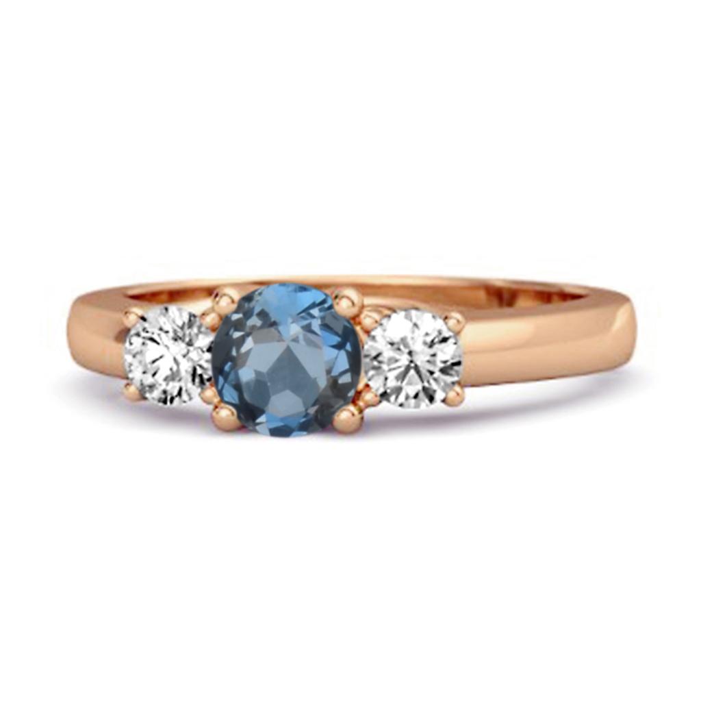 Кольцо из стерлингового серебра 925 пробы с тремя камнями: лондонский голубой топаз 1,00 карата и акценты из кубического циркония. Насыщенный и элегантный дизайн для декабрьских дней рождения или повседневной элегантности.