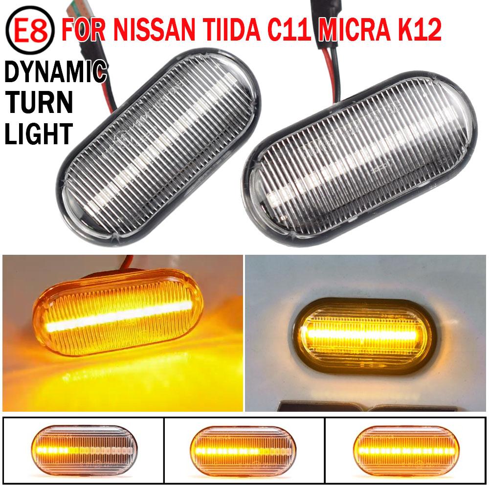 Светодиодный динамический указатель поворота для Nissan Tiida C11 Note E11 Micra K12 NP300 Navara D40 Qashqai J10, повторитель бокового зеркала