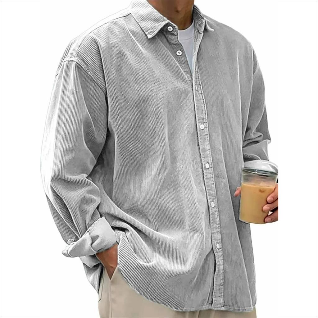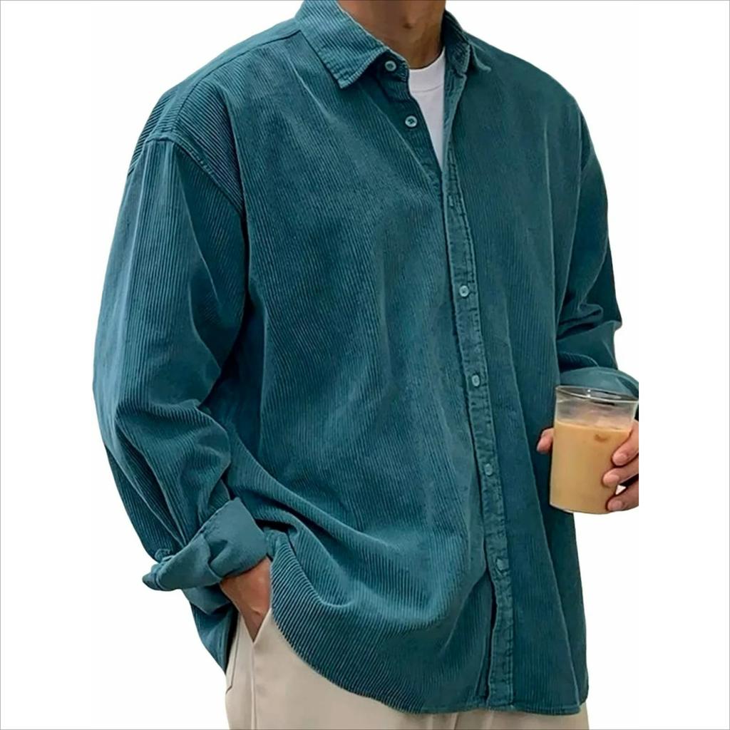 Мужская повседневная свободная вельветовая рубашка с лацканами однотонной расцветки