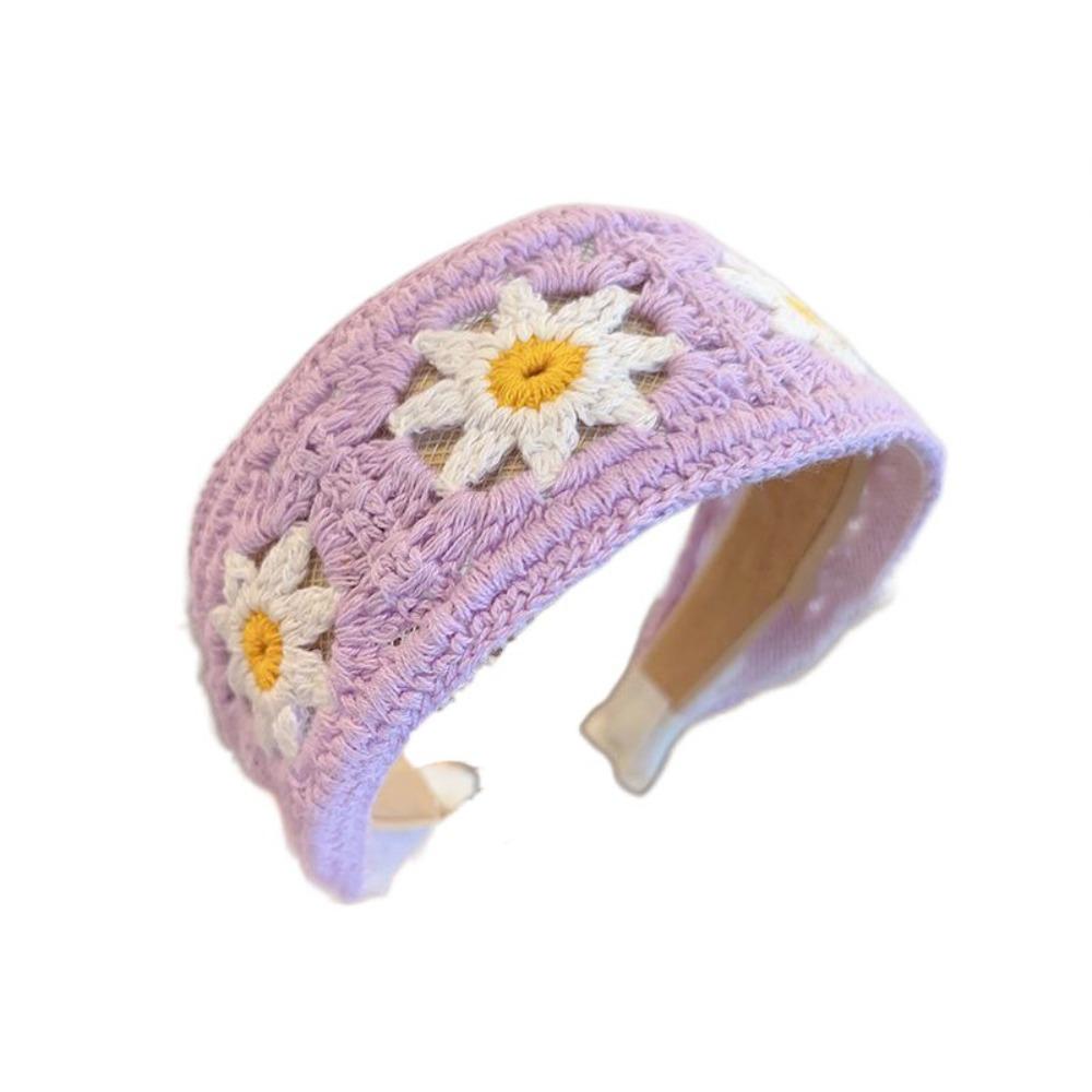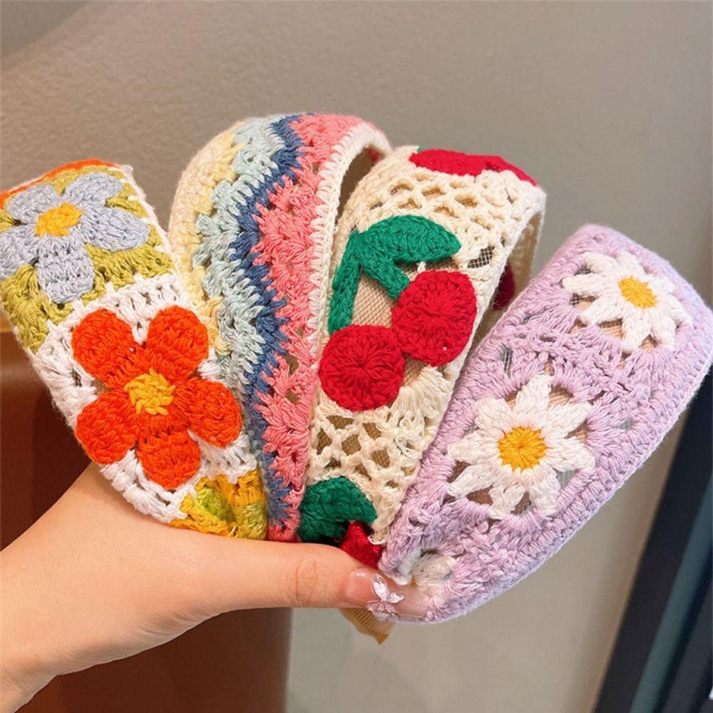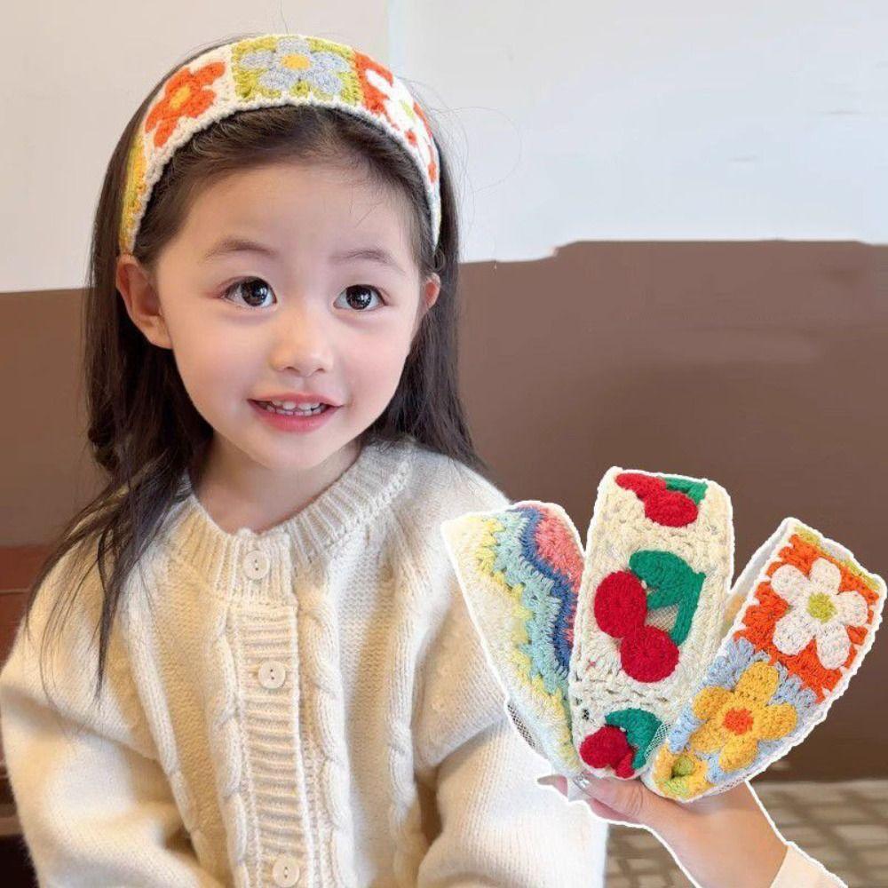 Crochet Wide Hair Hoop Embroidery Children Hair Band Cute Knitted Kids Headband Girl