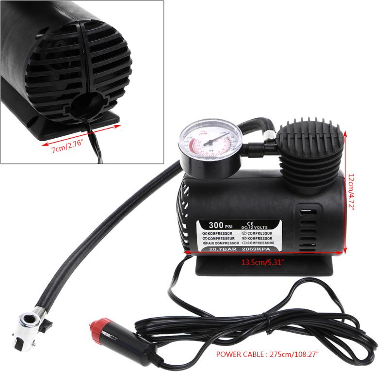 300 фунтов на квадратный дюйм 12 В автомобильный портативный мини-воздушный компрессор электрический насос для накачивания шин с манометром