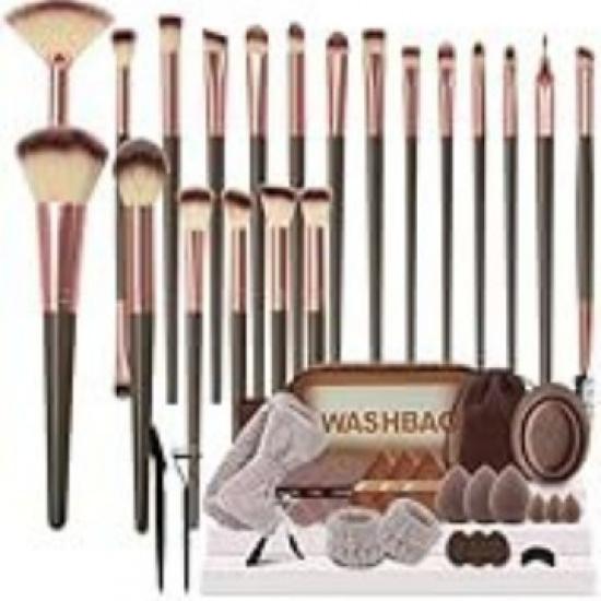 Новый набор из 30 кистей для макияжа кофейного цвета, 46 предметов, набор пуховок для пудры, инструменты для красоты, большой набор