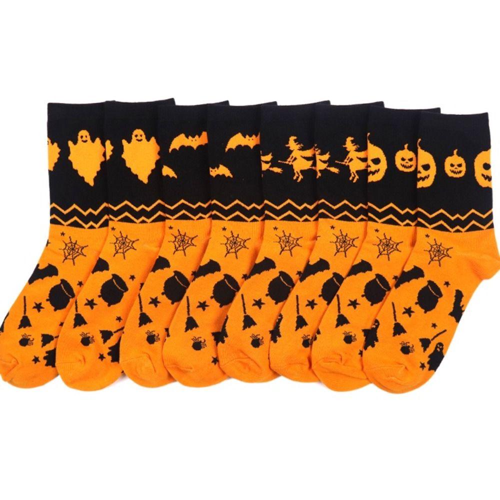 2Pairs Pumpkin Tube Socks Bat Cotton Socks Women Breathable Mid-Calf Stockings Party