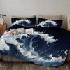 Комплект пододеяльника «Японская волна», трехпредметный комплект, комплект постельного белья на морскую тематику с традиционной японской живописью