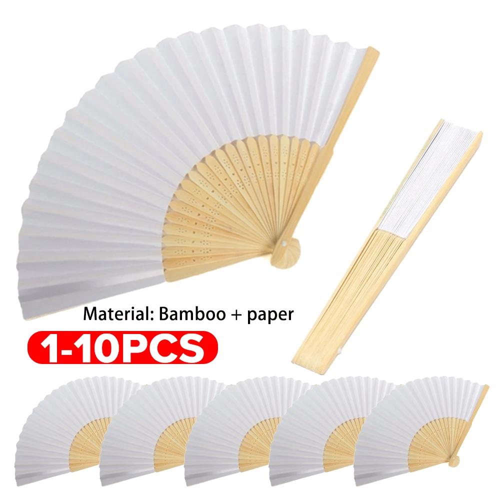 10-1pcs White Foldable Paper Fan Portable Chinese Bamboo Fan Wedding Gifts For Guest Birthday Party Decoration Kids Painting