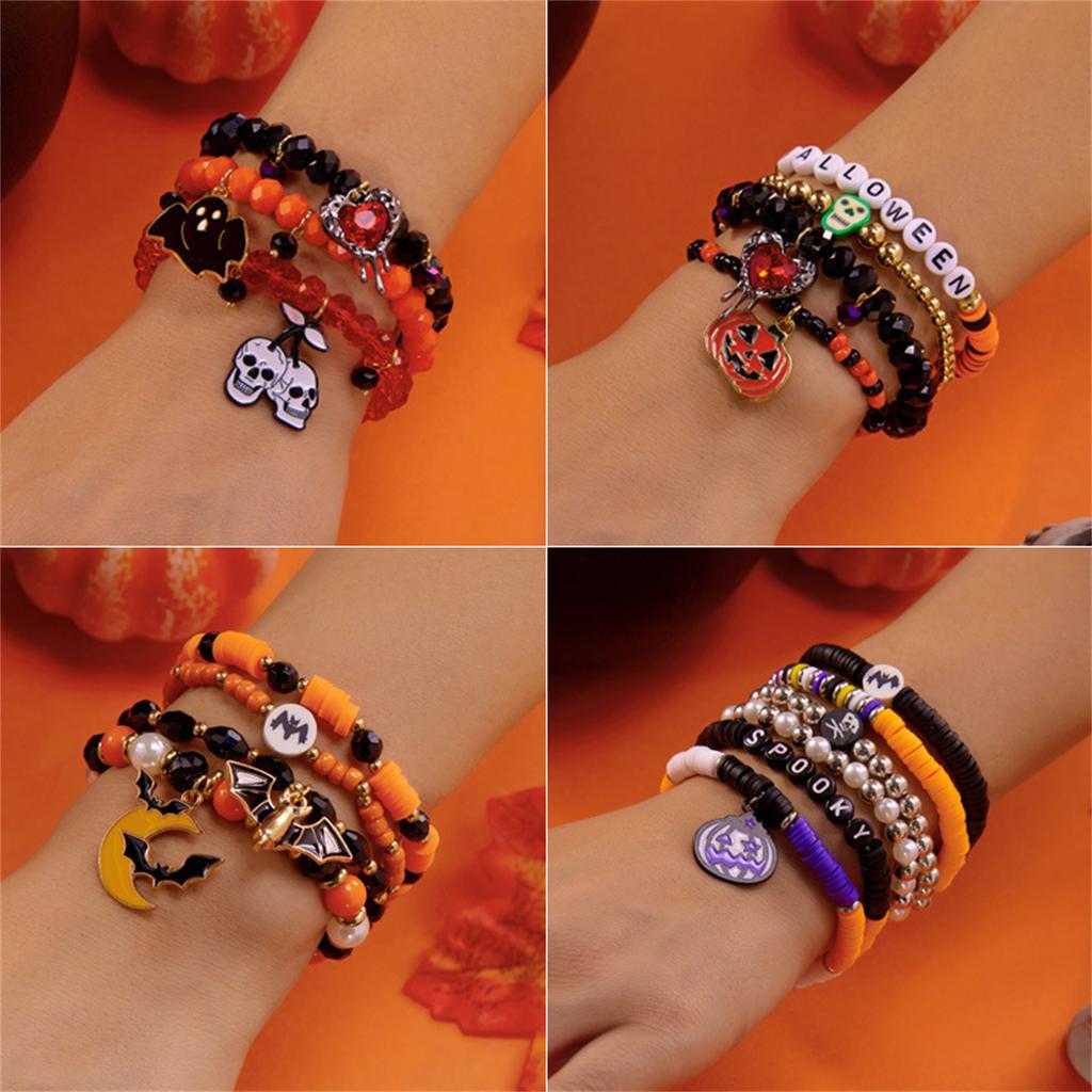 Хэллоуинские браслеты из бусин для женщин Тыква Эластичный штабелируемый браслет Милые жуткие аксессуары для костюма на Хэллоуин