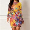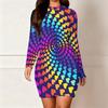 2025 Осень и Зима Новое 3D Принт с Любовным Узором и Окрашивание Женская Мода Платье с Длинным Рукавом и Круглым Вырезом, Облегающее Бедра Ограниченная Серия ко Дню Святого Валентина