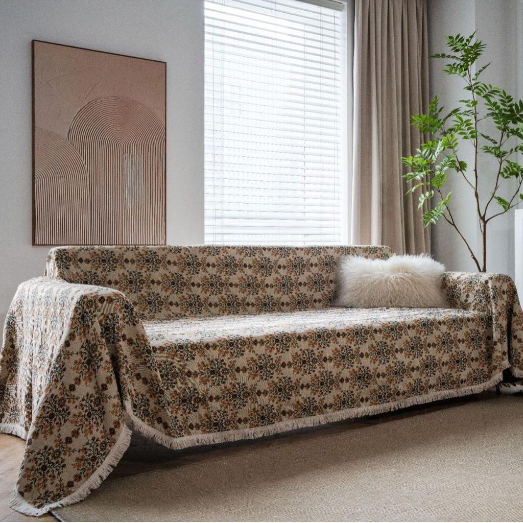 Exquisite sofa towel anti-cat scratch flower yellow jacquard thick retro factory direct supply