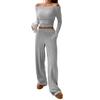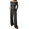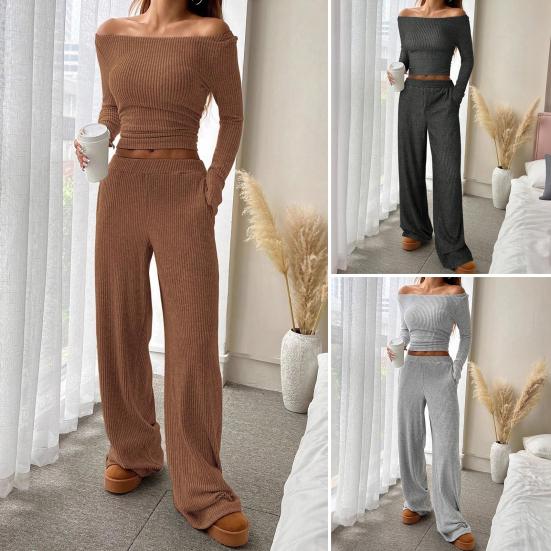 Женские костюмы-двойки Осенний повседневный топ в рубчик с длинным рукавом и вырезом-лодочкой, брюки с широкими штанинами, подходящий комплект для отдыха — купить товар онлайн с бесплатной доставкой до всему миру!