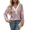 Элегантный регулируемый V-образный вырез со съемными пуговицами: Эта футболка с классическим V-образным вырезом, который визуально стройнит шею и лицо, дополнена стильными пуговицами спереди, которые можно расстегивать или застегивать по желанию.. Эта универсальность позволяет вам настроить стиль воротника, добавляя вашему наряду тонкий оттенок непринужденной сексуальности и изысканности, что делает его подходящим как для расслабленных, так и для чуть более нарядных случаев.