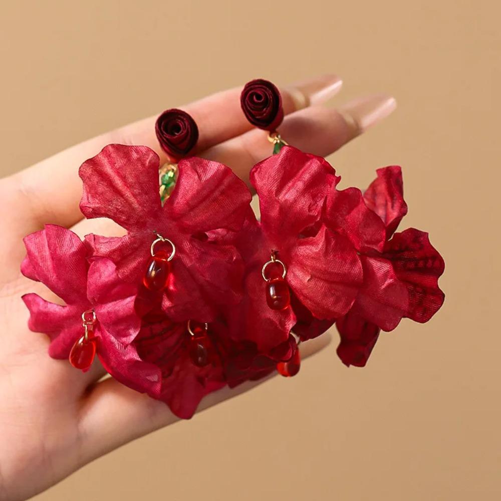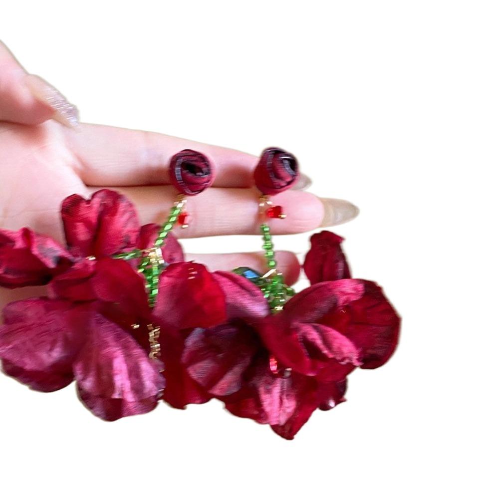 Преувеличенные пляжные серьги Лепестки из стекла и кристаллов Серьги-пусеты Серьги-подвески в виде цветов Весна Лето