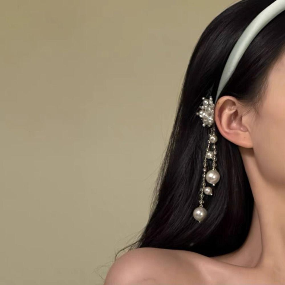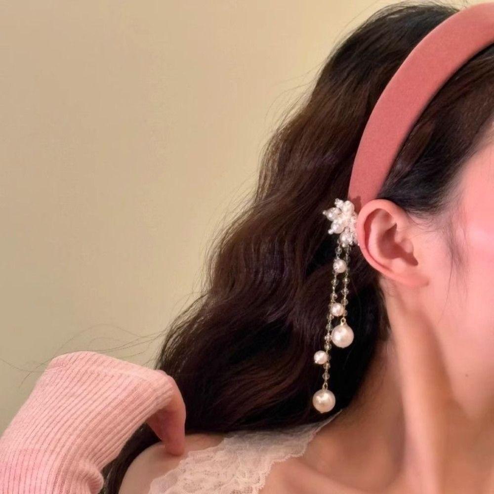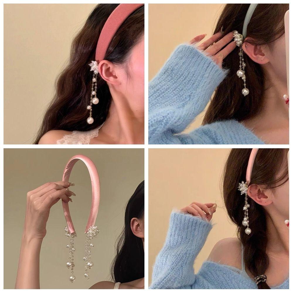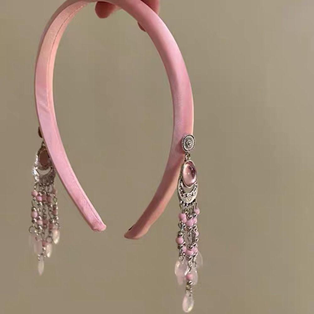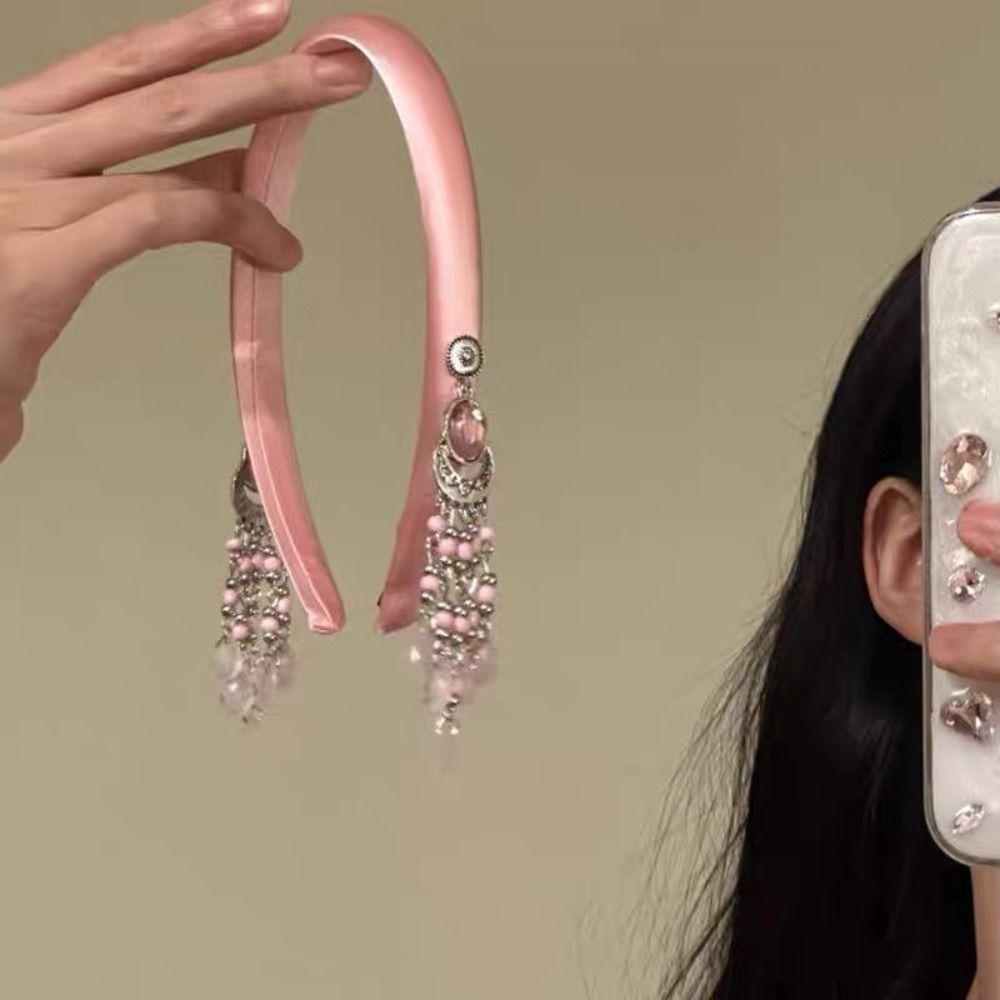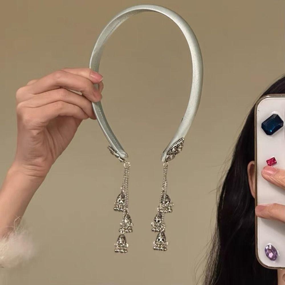 Сатиновый обруч для волос в этническом стиле, повязка на голову с хрустальной жемчужиной, креативная повязка на голову с кисточкой и колокольчиком, украшение