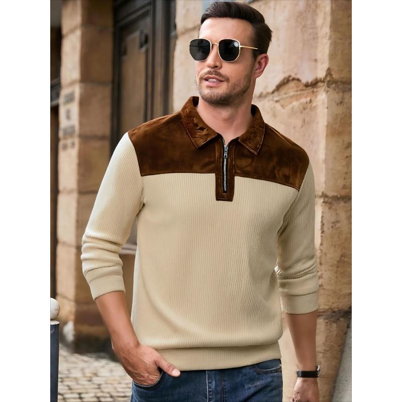 Новая Весна Осень Повседневная Замшевая Поло-толстовка Мужская Стильная Вязаная Пэчворк Текстурированная Поло-рубашка Мужская Винтажная С Полумолнией Воротником Свитшот Топы — купить товар онлайн с бесплатной доставкой по всему миру!