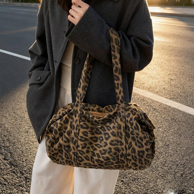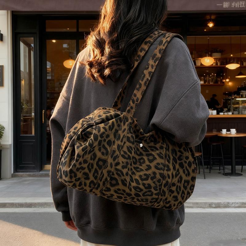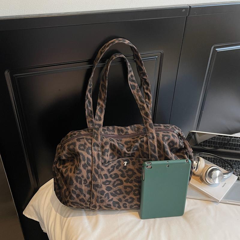Сумка на плечо с леопардовым принтом, большая вместимость, сумка-тоут для поездок