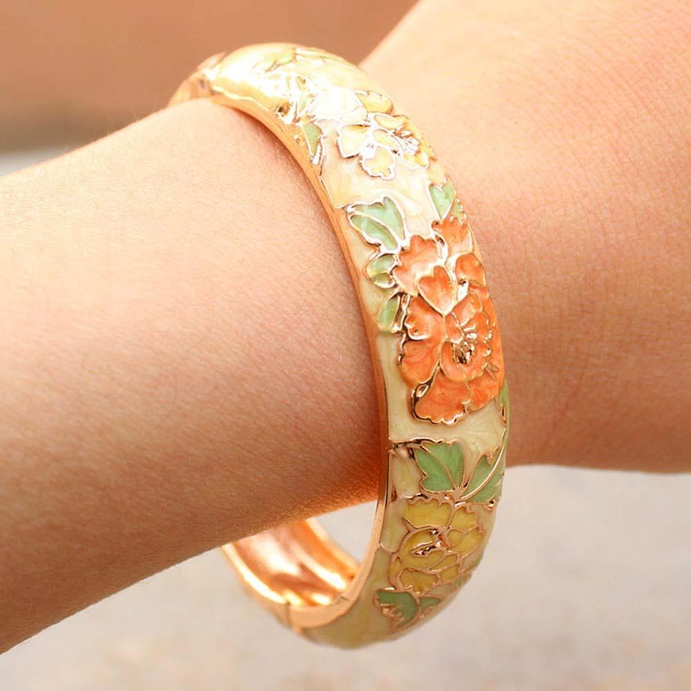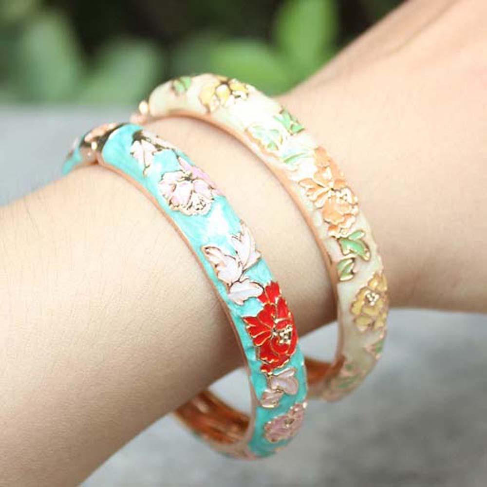 Hanfu Accessories Filigree Enamel Bangle Cheongsam accessories Hollow Out Peony Bracelet Girls