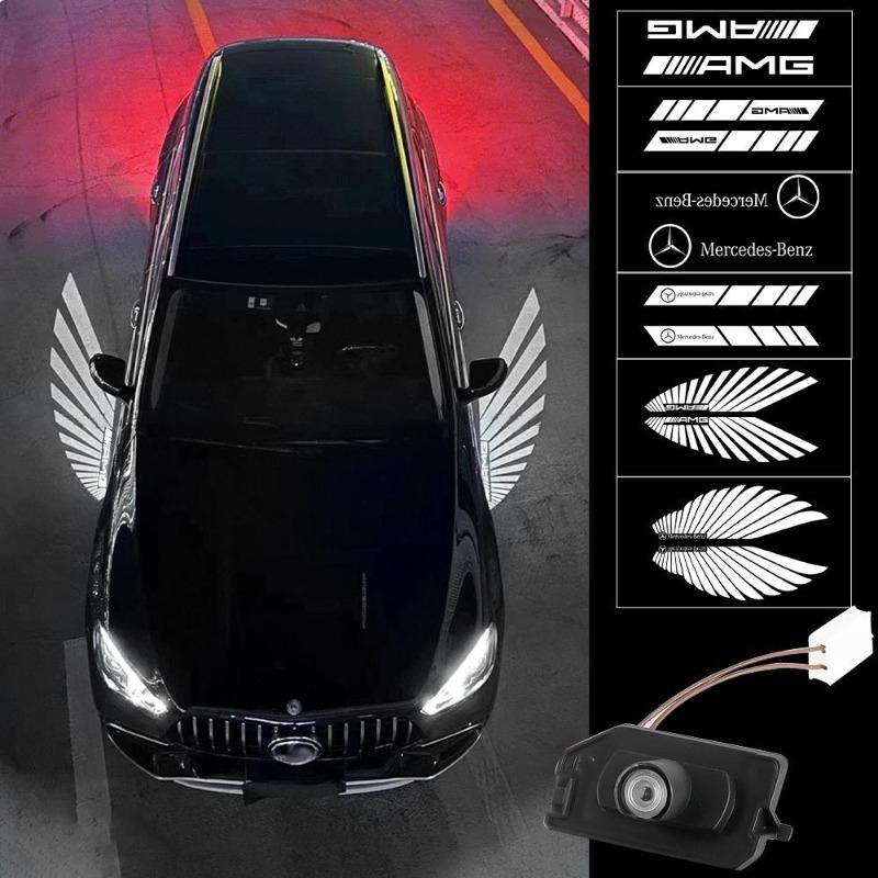 2 шт. Светодиодные HD проекторы в виде крыльев ангела, приветственные огни, ковровые лампы, атмосферная подсветка зеркала заднего вида для эмблемы Mercedes Benz AMG