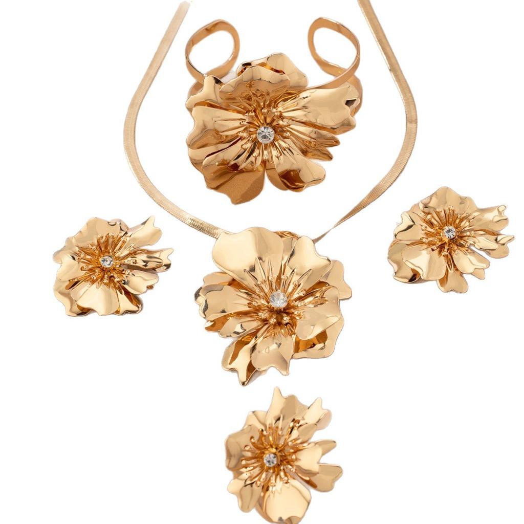 Модный премиальный набор аксессуаров из 5 предметов: ожерелье и браслет с инкрустацией в виде цветов, женский набор украшений
