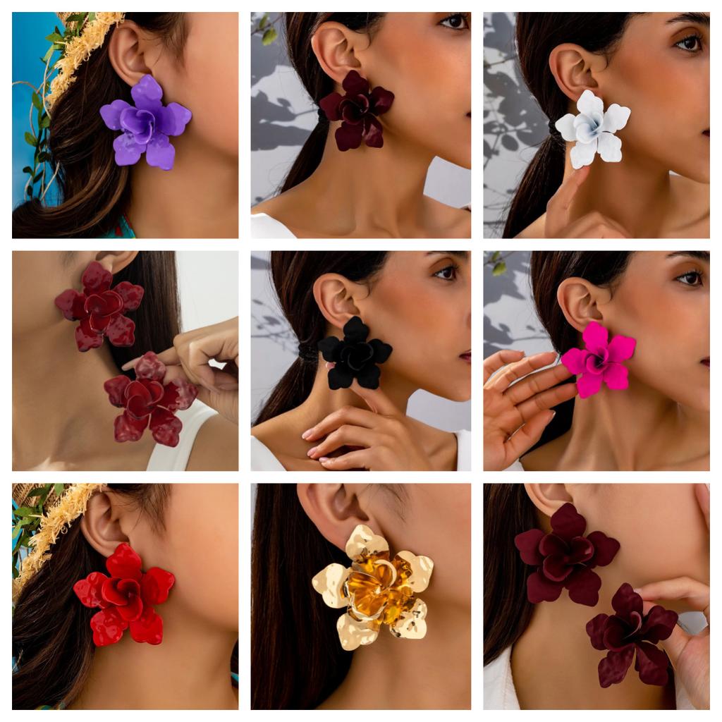Популярная ретро пара многоцветных серег-пуссет с преувеличенно большими цветами, подходящих для вечеринок