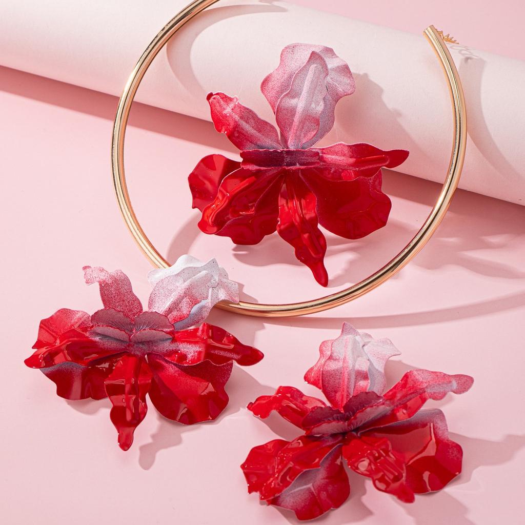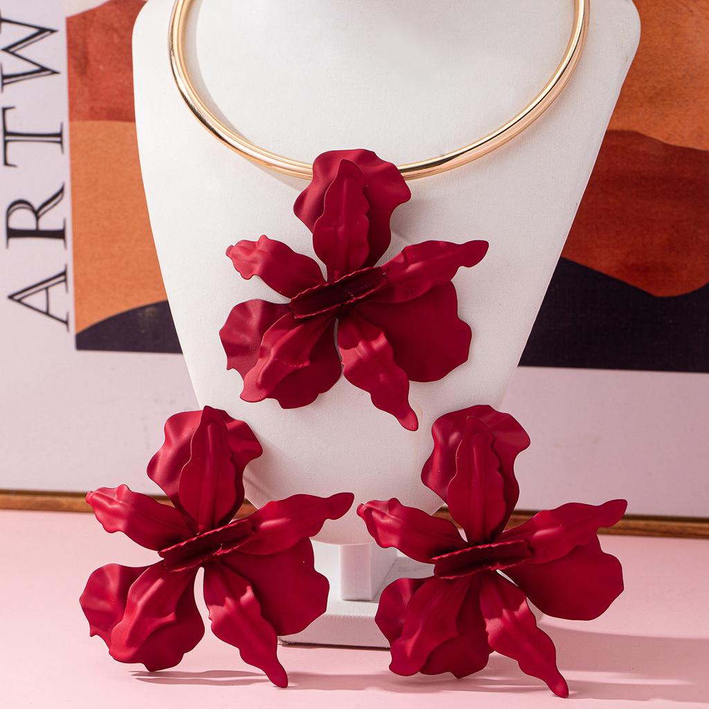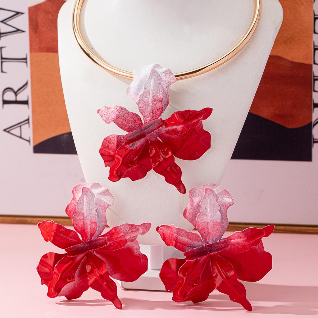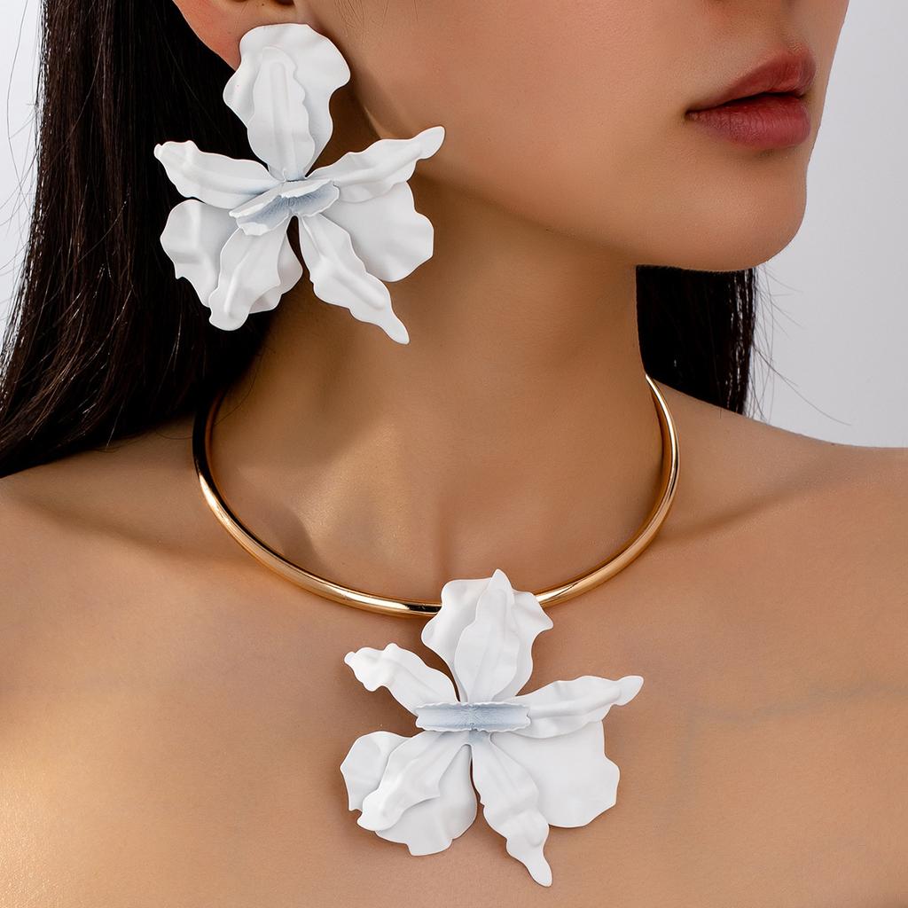 Персонализированный Преувеличенный Подвеска-Цветок Ожерелье Серьги Набор Женская Мода Уличная Съемка Неправильной Формы Лепестки Ювелирные Изделия