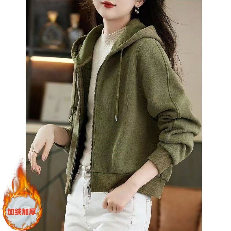 Темпераментная толстовка с капюшоном из бархата с утолщением, женский новый кардиган на молнии, однотонная универсальная модная куртка