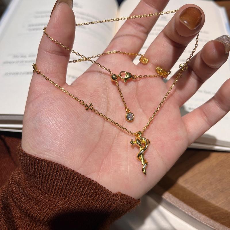 Ожерелье-скипетр Духа Змеи Женское Крест Узор питона Ретро Извивающееся Натальный Зодиак Змея Подвеска Древняя Ключичная Цепочка
