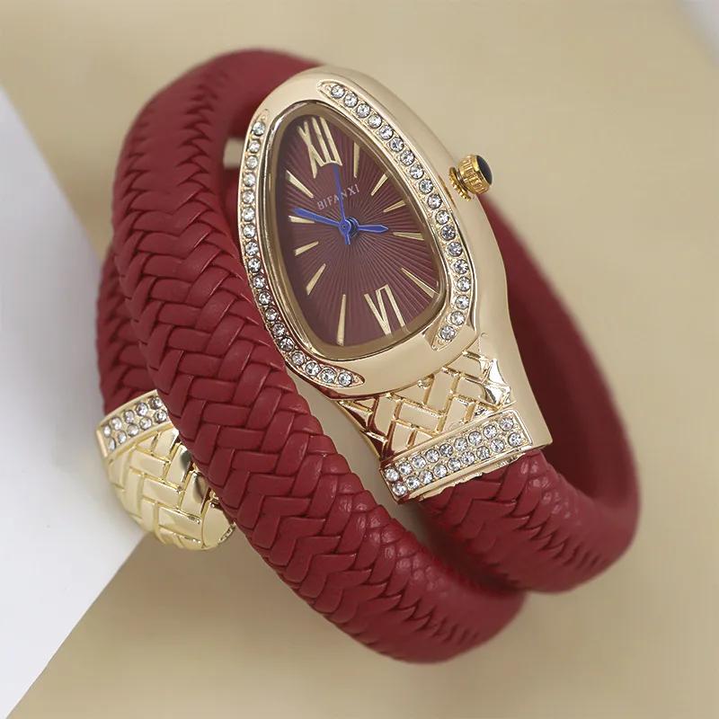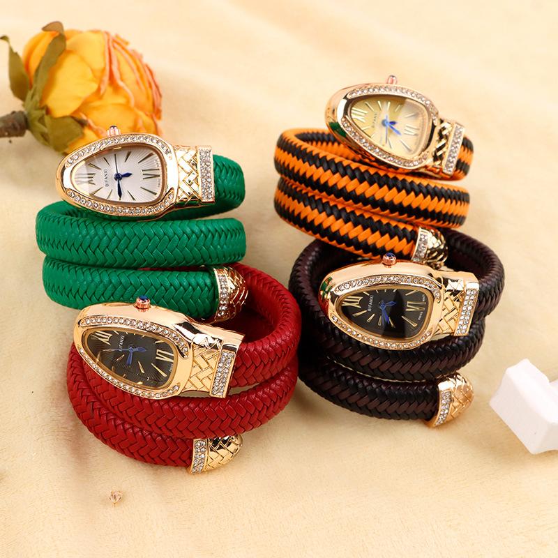 Роскошные Уникальные Цветные Ремешки Кварцевые Часы Дизайн в Форме Змеи Браслет Женские Часы Креативный Браслет Уникальные Часы AAA Reloj