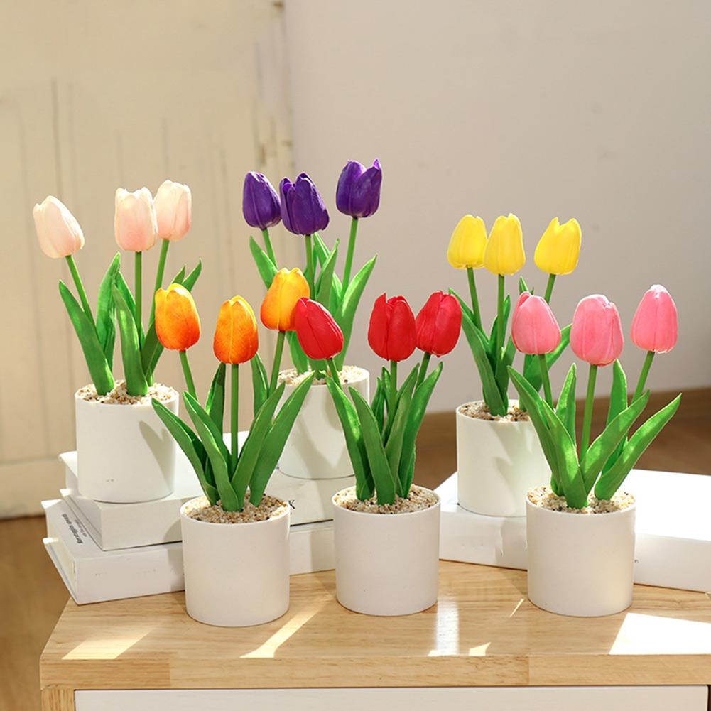 Искусственные цветы тюльпана в горшке, искусственные горшечные растения для украшения дома, офиса, свадьбы, вечеринки и сада, горшечные растения тюльпана