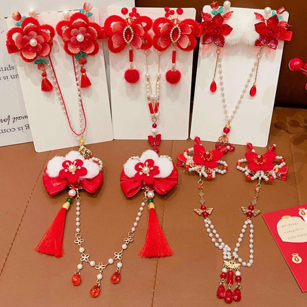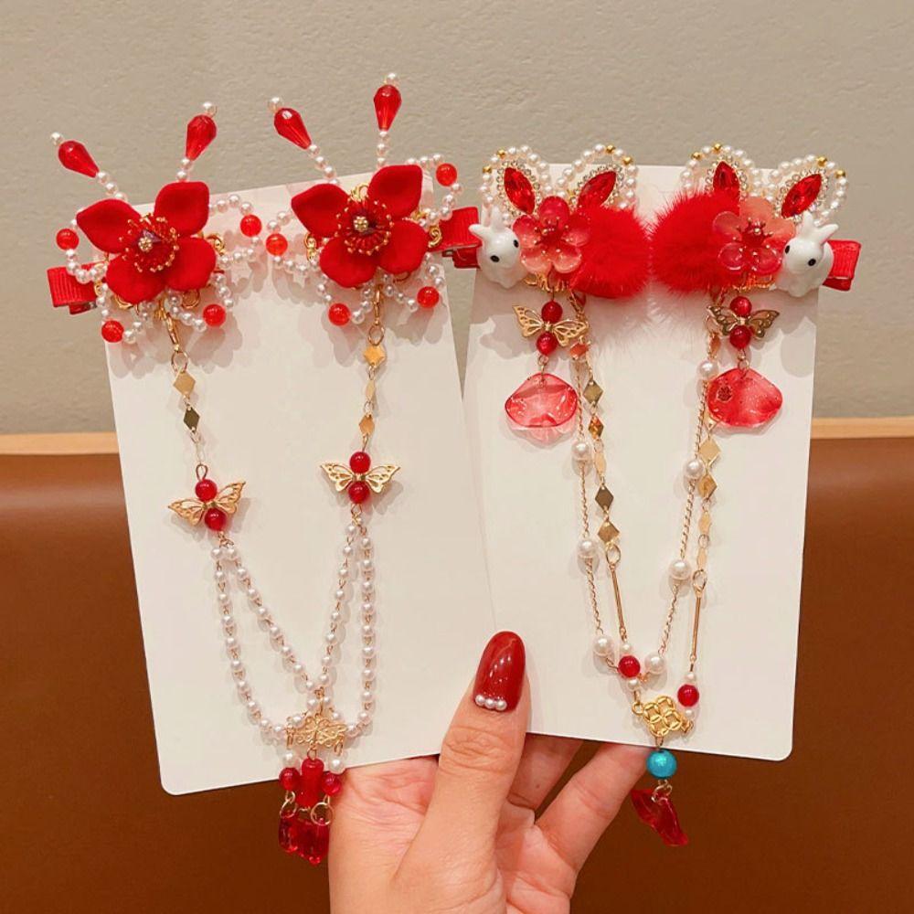 Forehead Chain Chinese Style Red Barrettes Hanfu Headwear Ancient Style Hair Clip Girls
