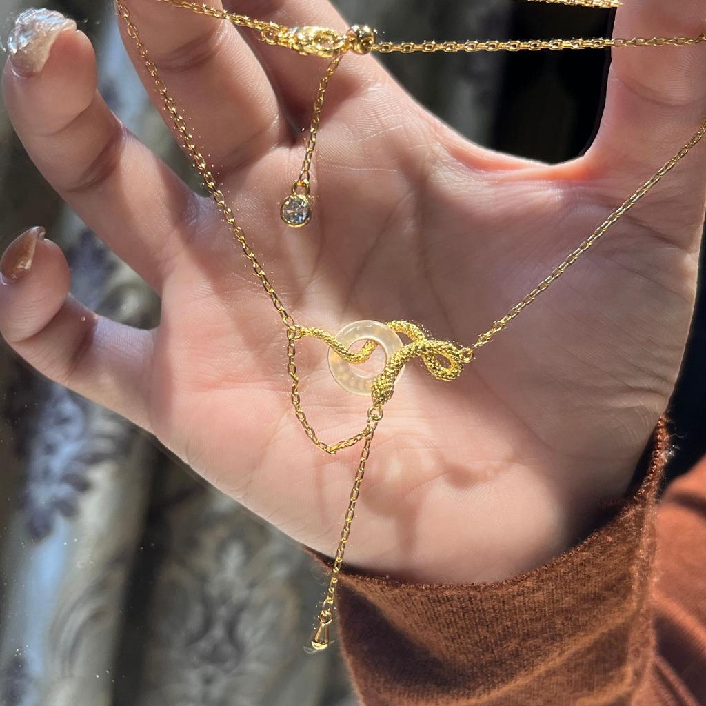 Змея Золотой Дух Змея Обернутая Белым Халцедоном Пряжка Безопасности Ожерелье Змея Рождения Цепочка для Свитера Змея Духа Кольцо