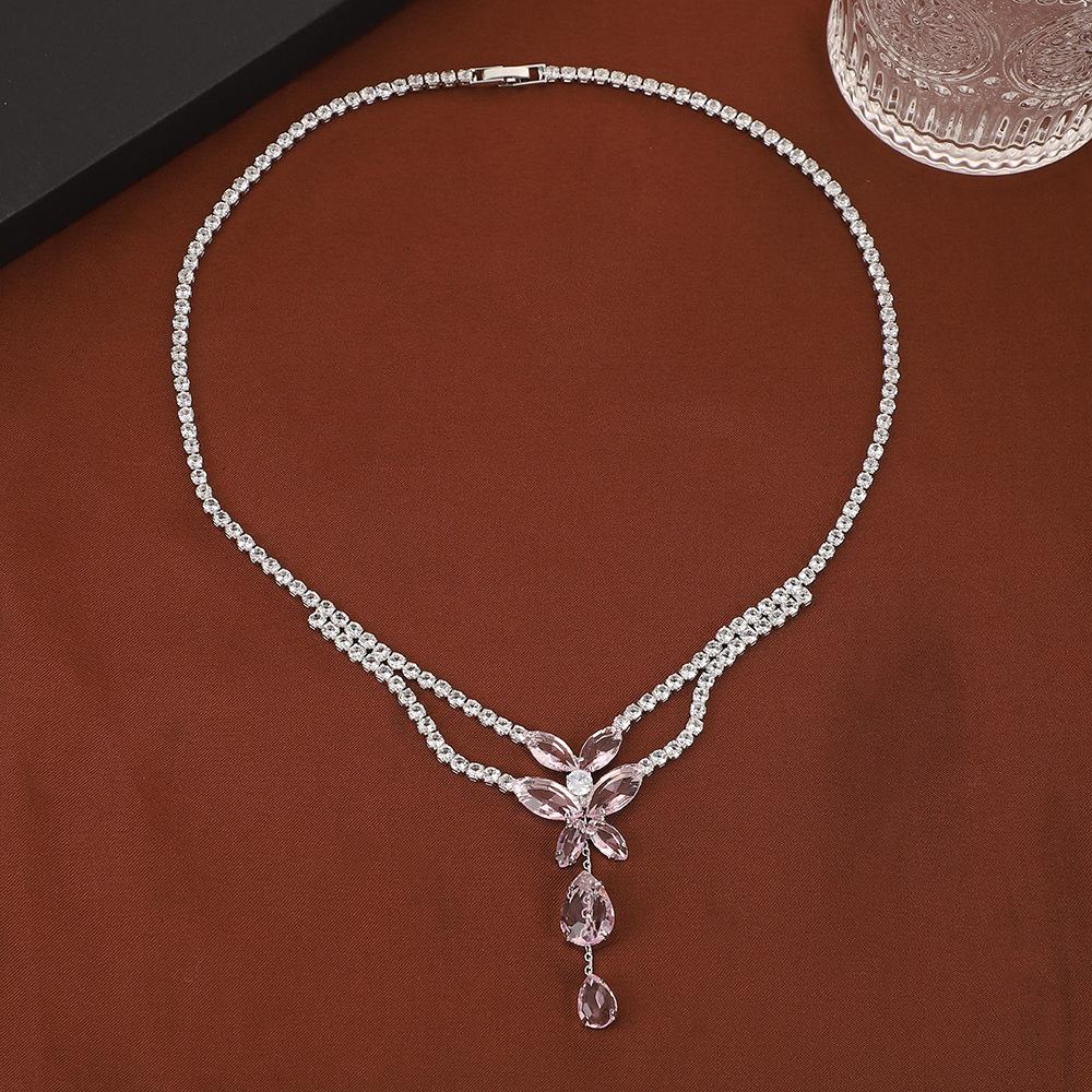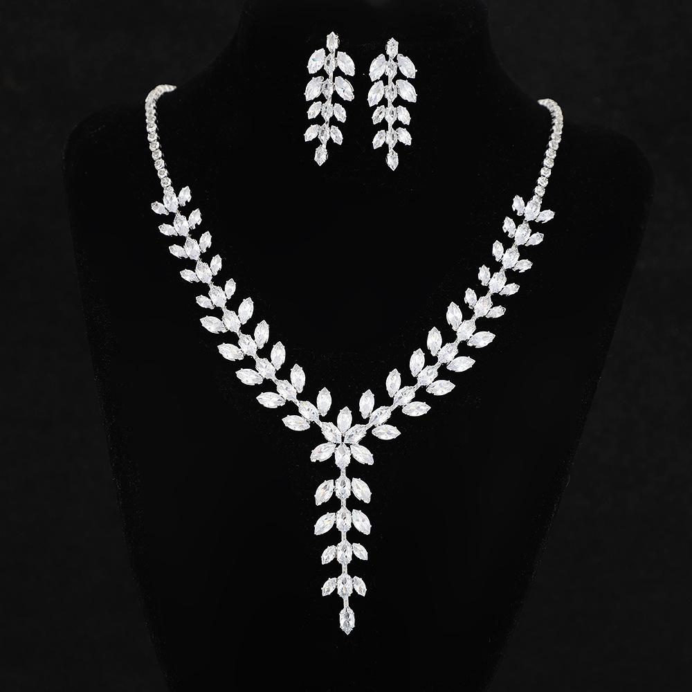 Premium Princess Full Diamond Leaf Necklace Earrings Set Court Zircon Set Chain Dress Accessories
