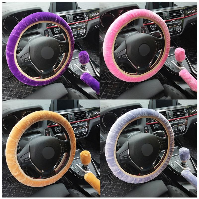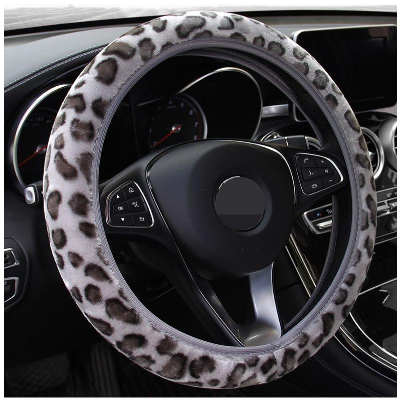 Универсальные плюшевые чехлы на руль автомобиля леопардового цвета с зимним мехом, комплект чехлов для ручного тормоза, салон автомобиля