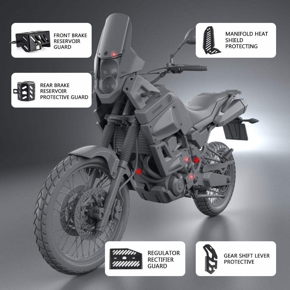 Коллектор, тепловой экран, рычаг переключения передач, тормозной бачок, регулятор, выпрямитель, защитная крышка для Yamaha Tenere XT660Z XTZ