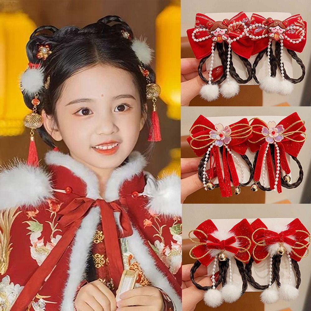 Princess Children's New Year Hairpin Red Girls Hanfu Headwear Sweet New Year Bow Hairpins Kids