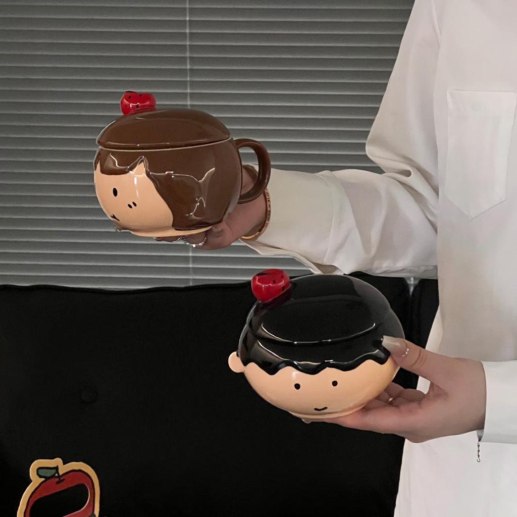 Креативная керамическая кружка для воды с крышкой, милая кружка для воды для мальчика и девочки, бытовая кружка для воды, керамическая кружка для пары.