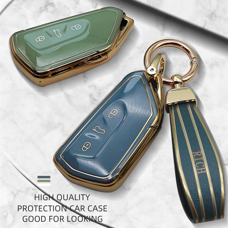 Роскошный чехол для дистанционного ключа Golden Edge с полным покрытием для Volkswagen VW Golf 8 Mk8 для Skoda Octavia A8 для Seat Leon Car — купить товар онлайн с бесплатной доставкой по всему миру!