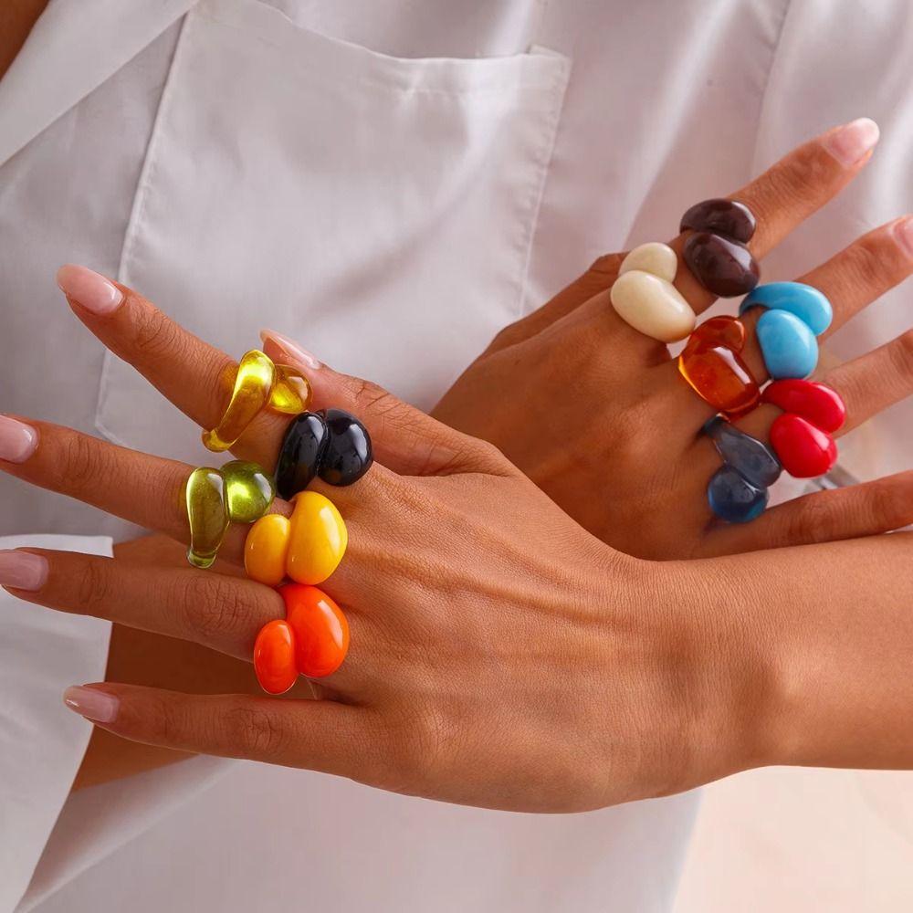 Resin Water Drop Chunky Rings Multicolor Y2K Vintage Ring Creative Boho Geometric Open Ring Women