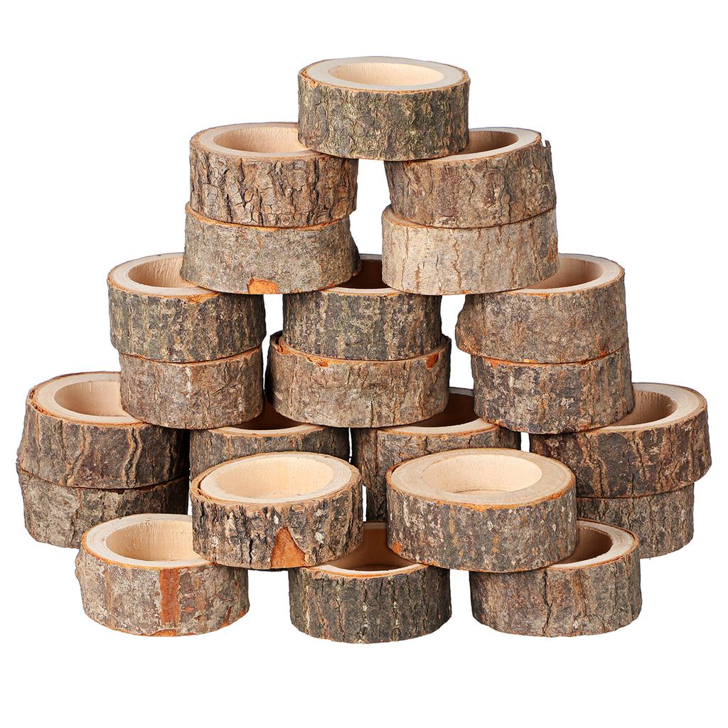 24 шт. Деревянные подставки Натуральный березовый пень Набор подставок для чайных свечей для деревенских центральных элементов Домашний декор День благодарения Рождество