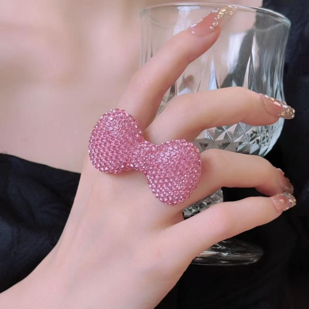 Sparkle Bow Women Finger Ring Adjustable Y2k Millennial Ring Trendy Pink Bow Rings Finger Charms