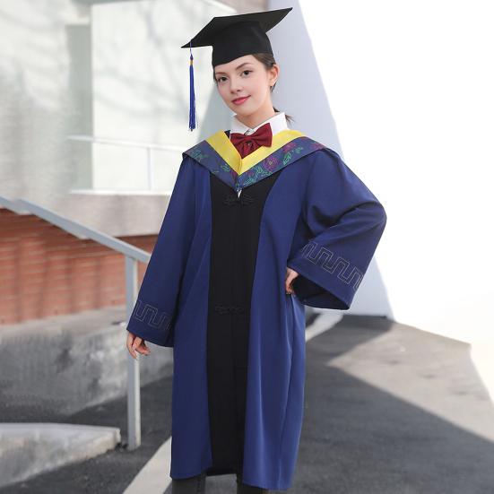 Традиционный академический стиль: Этот выпускной плащ для университета, выполненный в классическом трехмерном крое, вдохновленном традиционными академическими мантиями, отличается длинными ниспадающими рукавами и свободным силуэтом, придающим ему достойный вид.. Культовые академические кисточки украшают манжеты и подол, символизируя торжественность и научные достижения, что делает его идеальным для официальных выпускных церемоний.
