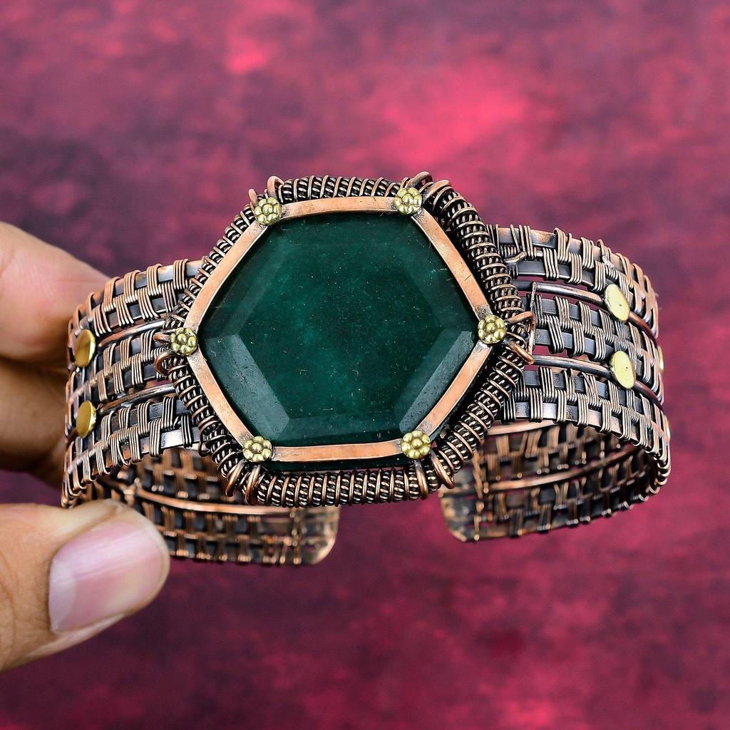 Граненый Замбийский Изумрудный Браслет-Браслет, Обмотанный Медной Проволокой, Регулируемый Браслет