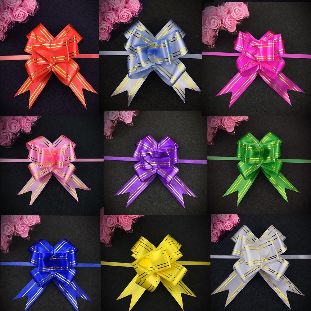 20pcs Wedding Car Pull Bows Golden Side Design For Gift Wrapping Christmas Decorations String Bows Ribbon Knots Favours Bags