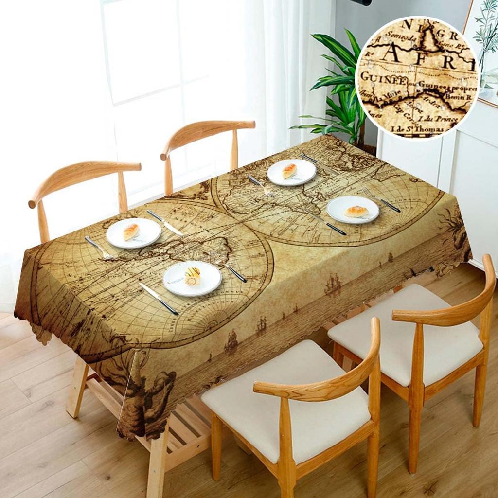 Винтажная карта мира Земля Прямоугольная Водонепроницаемая Скатерть Декор для вечеринки Многоразовая Кухонная Обеденная География Скатерть Для Кемпинга Барбекю