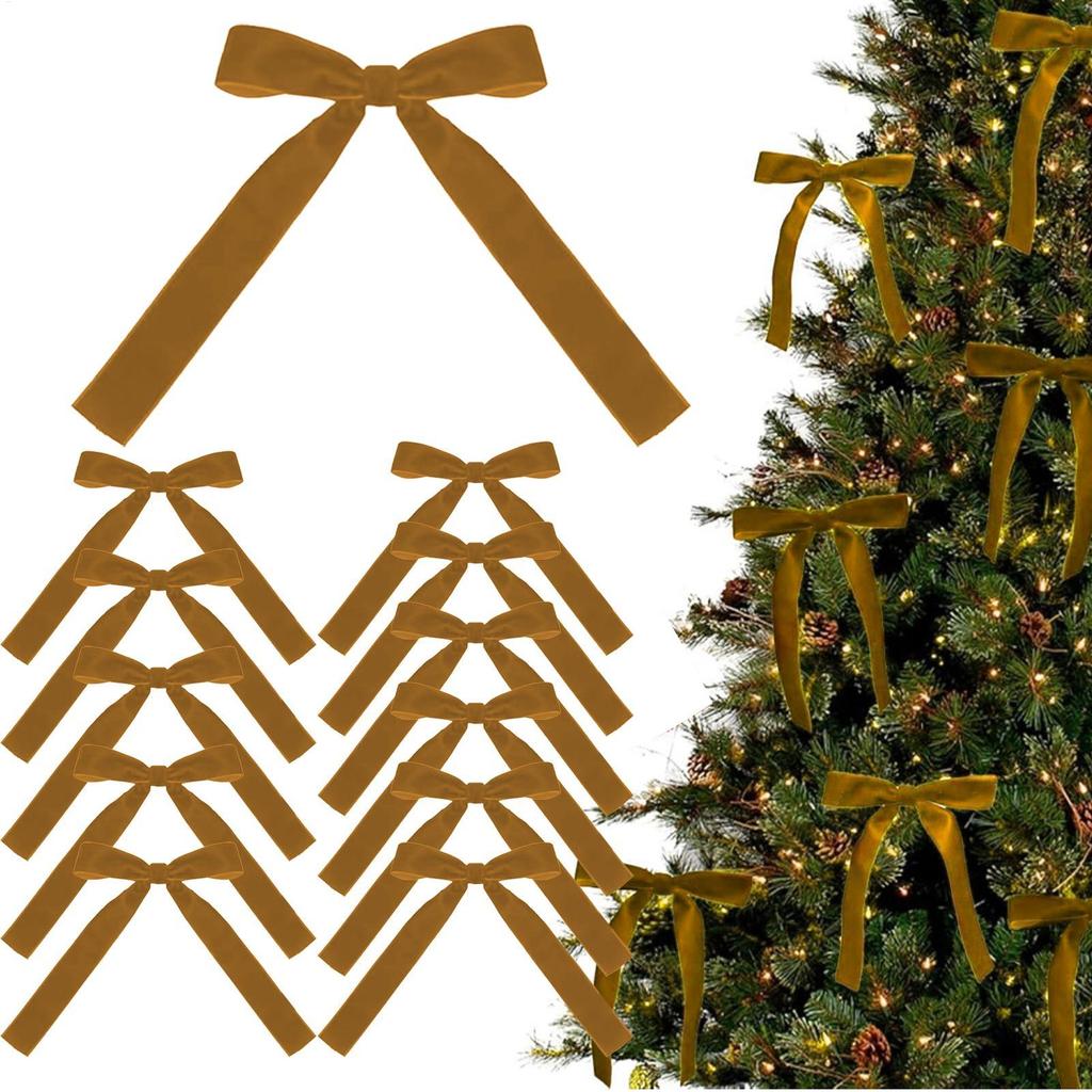 12 Velvet Bows For Christmas Trees - Used As Rural Gift Bows For Christmas Home Decoration Outdoor And Indoor Occasions
