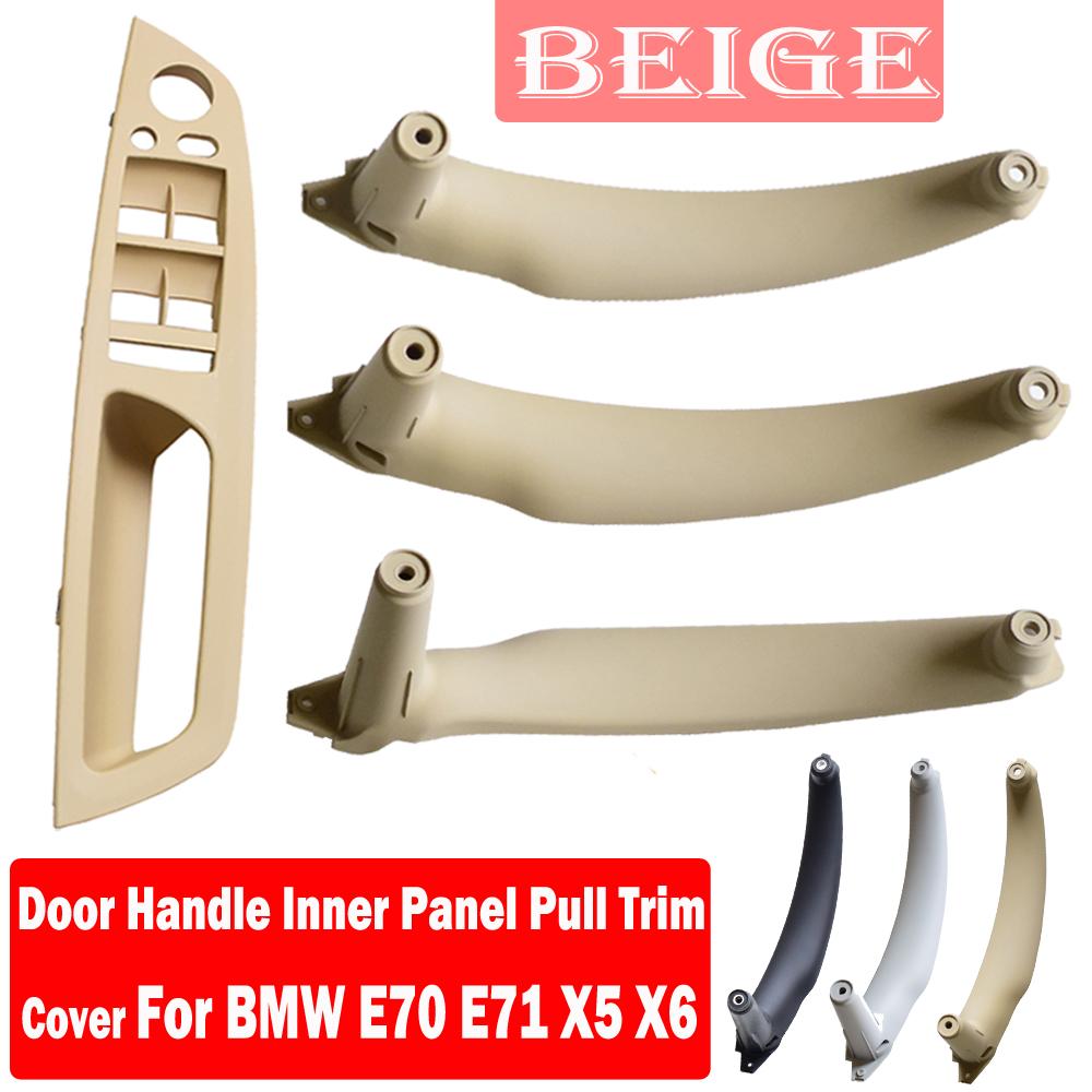 Бежевая Натуральная Кожа Автомобильная Передняя Задняя / Левая Правая Внутренняя Ручка Двери Внутренняя Панель Накладка Крышка Для BMW E70 E71 X5 X6 07-13