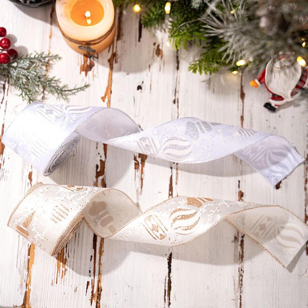 Christmas Ribbon 2 Rolls DIY Christmas Tree Wreath Bow Ribbon, Christmas Tree Top Decoration Bows Crafts Gift Wrapping Ribbon