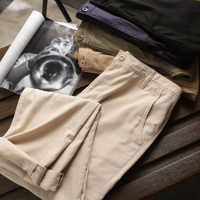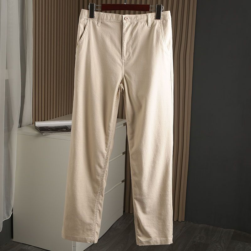 Cotton! Linen! OEM Goods out of Japan! Export Men's Clothing Balance Cargo with Logo Cut off Business Slim-Fitting Small Straight Casual Pants