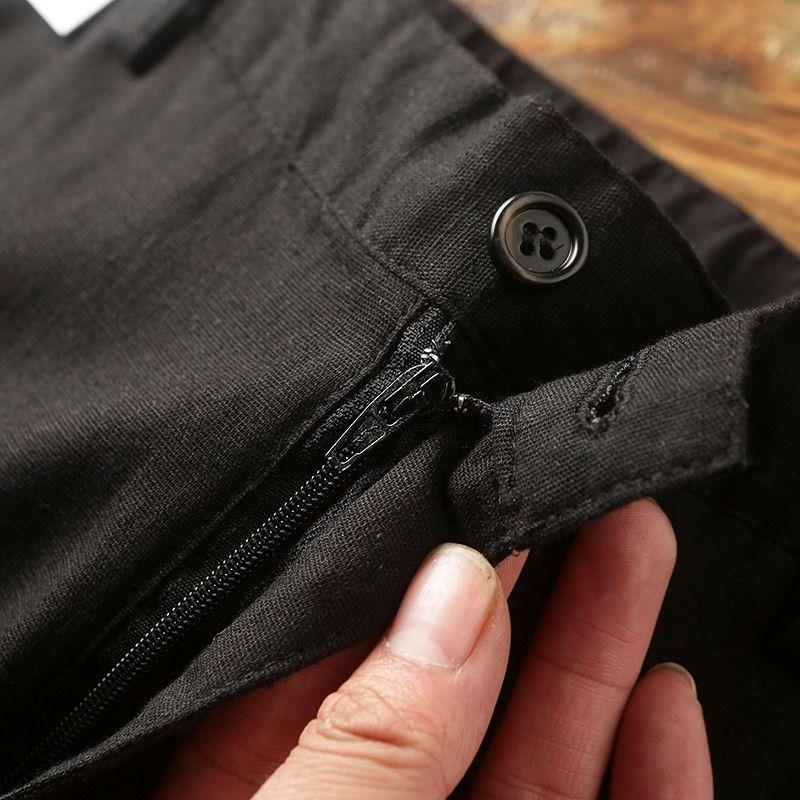Breathable Linen! Export Men's Factory Balance Cargo with Logo Cut off Men Pure Color Pencil Pants Cotton and Linen Casual Pants Cropped Pants