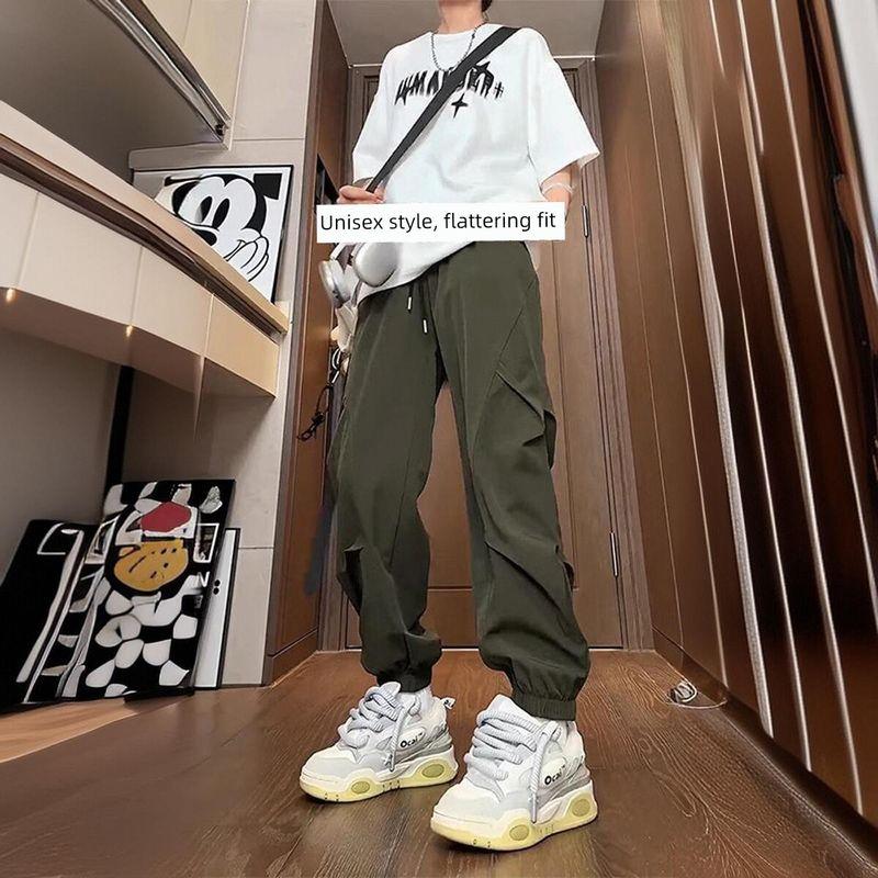 Черные плиссированные стильные брюки для мужчин, осенние быстросохнущие брюки-джоггеры в американском стиле, повседневные походные брюки-карго