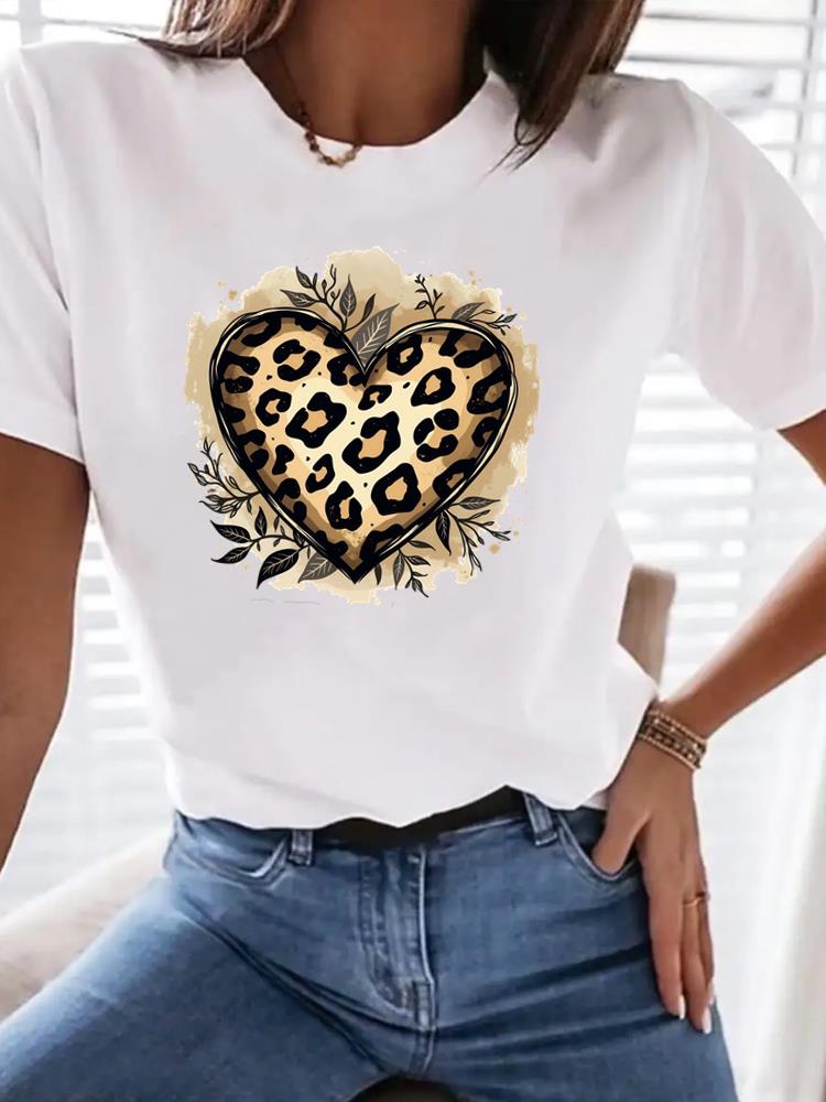 (Asian Size) Print Female Clothing T Shirt Women Fashion Tee Top leopard love heart Woman Short Sleeve Graphic T-shirts